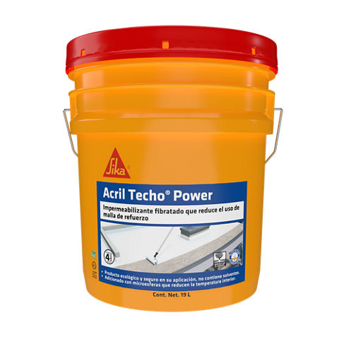 Sika® Acril Techo® Power 4 años es recubrimiento elástico impermeable con base en resinas acrílicas, para la impermeabilización flexible de cubiertas y terrazas.