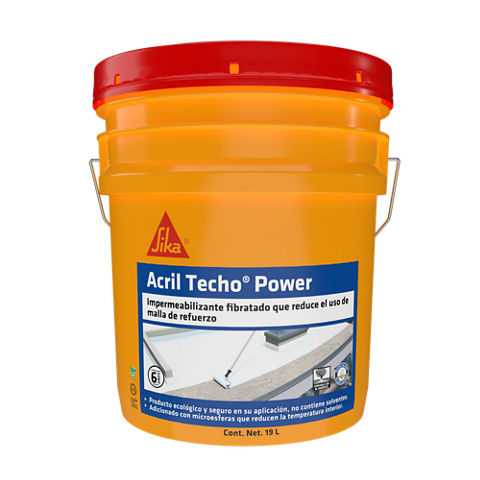 Sika® Acril Techo® Power 6 años es recubrimiento elástico impermeable con base en resinas acrílicas, para la impermeabilización flexible de cubiertas y terrazas. Este producto es una nueva fórmula mejorada con fibras, que le permite puentear mejor las fisuras del sustrato.