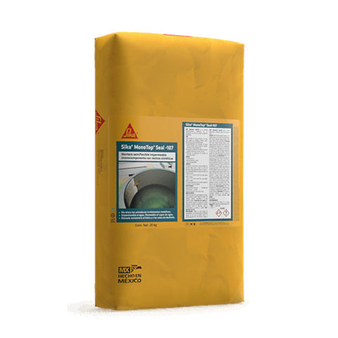 Sika MonoTop® Seal-107, es un mortero mono-componente y semiflexible con base en cemento y polímeros modificados para revestimientos impermeables.