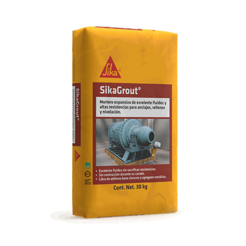 SikaGrout® es un mortero premezclado de altas resistencias, diseñado para ofrecer alta fluidez y autonivelación. Está compuesto por una combinación optimizada de cementos especiales, agregados de granulometría controlada, aditivos fluidificantes y reductores de agua de alto rango, dosificados cuidadosamente para garantizar el control de los cambios de volumen durante el curado.